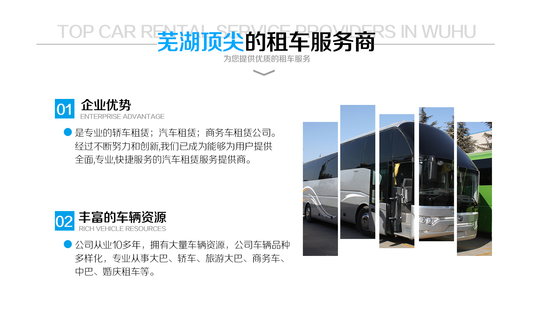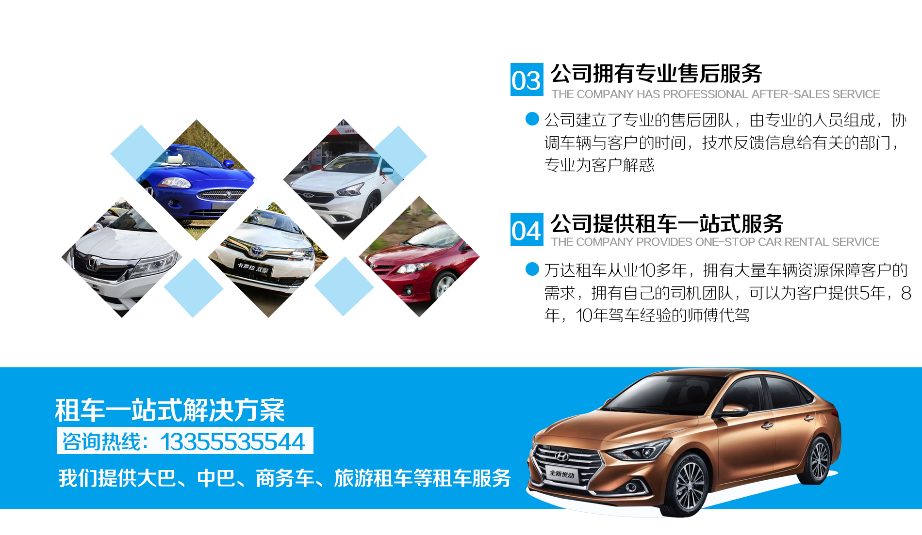 蕪湖萬達汽車租賃有限公司是經工商行政依法注冊的專業,正規的汽車租賃公司。是專業的轎車租賃;汽車租賃;商務車租賃公司。經過不斷努力和創新,我們已成為能夠為用戶提供全面,專業,快捷服務的汽車租賃服務提供商,我們的目標是通過服務質量,創造并引領市場,打造汽車租賃業的品牌。公司以誠信求發展,承“顧客至上,誠信進取”的經營理念,無論度假、自助旅行、或出差、接待,通過我們的服務,你可以放心的開始您愉快的旅行。企業文化:企業使...